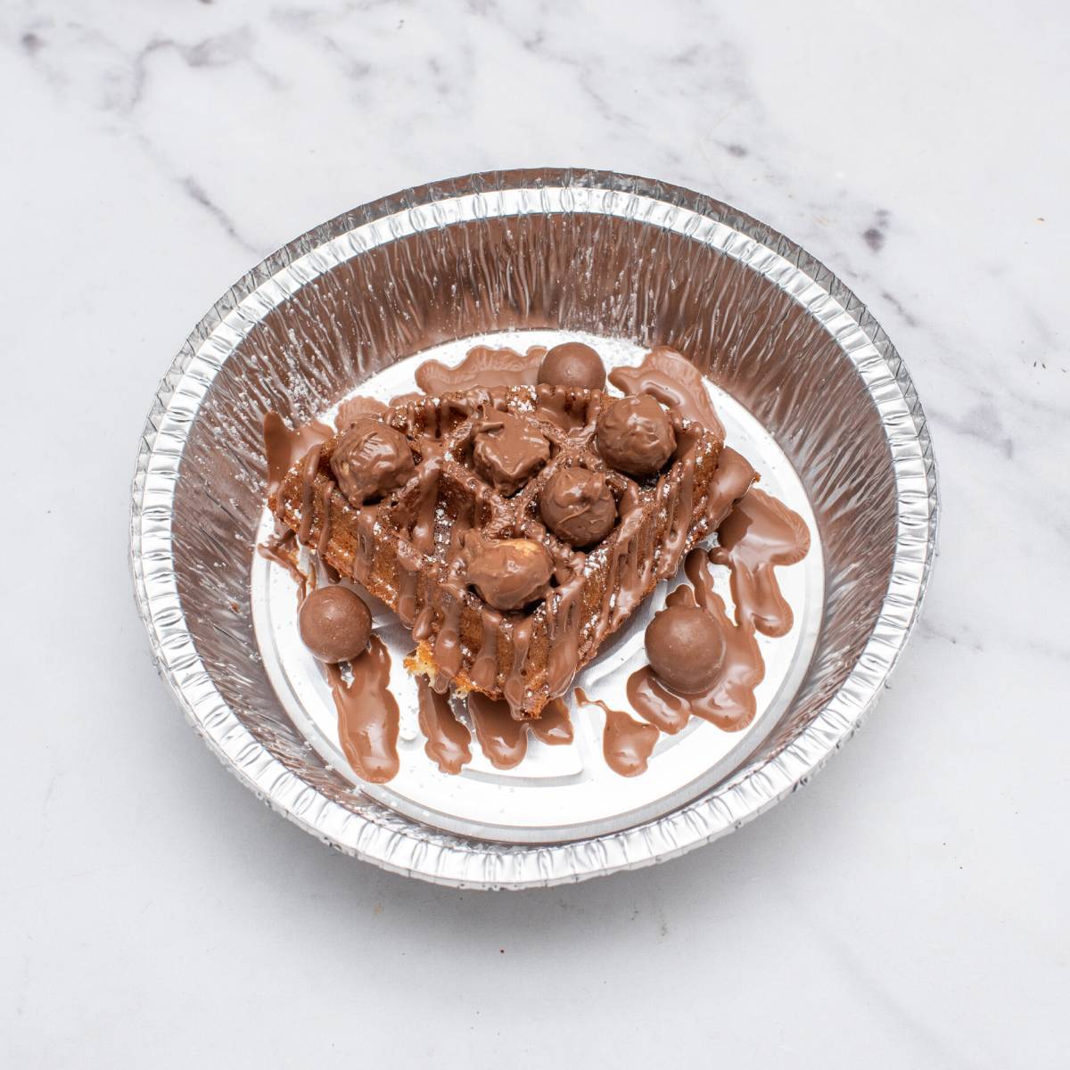 Maltesers with Belgian chocolate sauce – crunchy, melty, and chocolatey