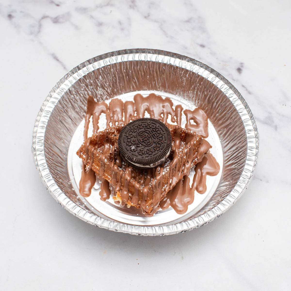 Topped with crushed Oreos and chocolate sauce – a mini classic for little chocoholics